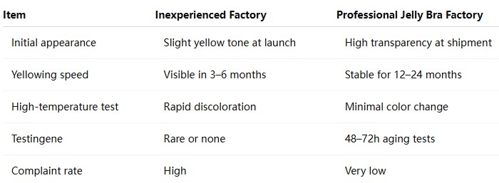 FAQ 2: Can Professional Factories Make Jelly Bras 100% Non-Yellowing?